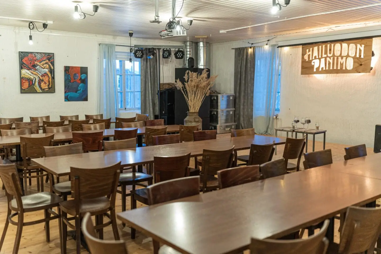 Our downstairs bar features 14 taps, offering a wide selection of Hailuodon Brewery’s organic beers and unique specialties from Oulu’s local breweries. We also serve wines and non-alcoholic beverages.